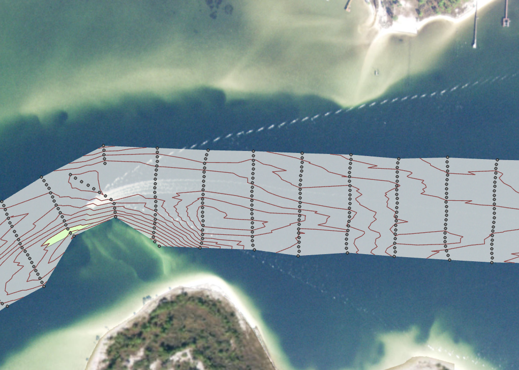 To determine where to dredge and how much material needs to be removed, USACE conducts regular hydrographic surveys to monitor channel conditions. Survey data is collected through single-beam or multi-beam sonar from small craft, large ships, and airplanes. This data is plotted on maps to identify “shoaled” areas—areas that have become shallower than the required depth and, therefore, require dredging. The results are printed for use by dredge operators and inspectors and compiled into various USACE reports, including Channel Condition Reports (CCRs), which identify the minimum depth of each channel quarter of the navigation channel, and Channel Condition Indices (CCIs), which identify the percentage of time a navigation channel has met its Congressionally authorized project dimensions. USACE is also required by law (33 CFR § 209.325) to supply channel condition information to the National Oceanic and Atmospheric Administration (NOAA), so channel depth information can be included on its nautical charts. (See “Appendix B—33 CFR § 209.325 – Navigation Lights, Aids to Navigation, Navigation Charts, and Related Data Policy, Practices and Procedures” for details).
